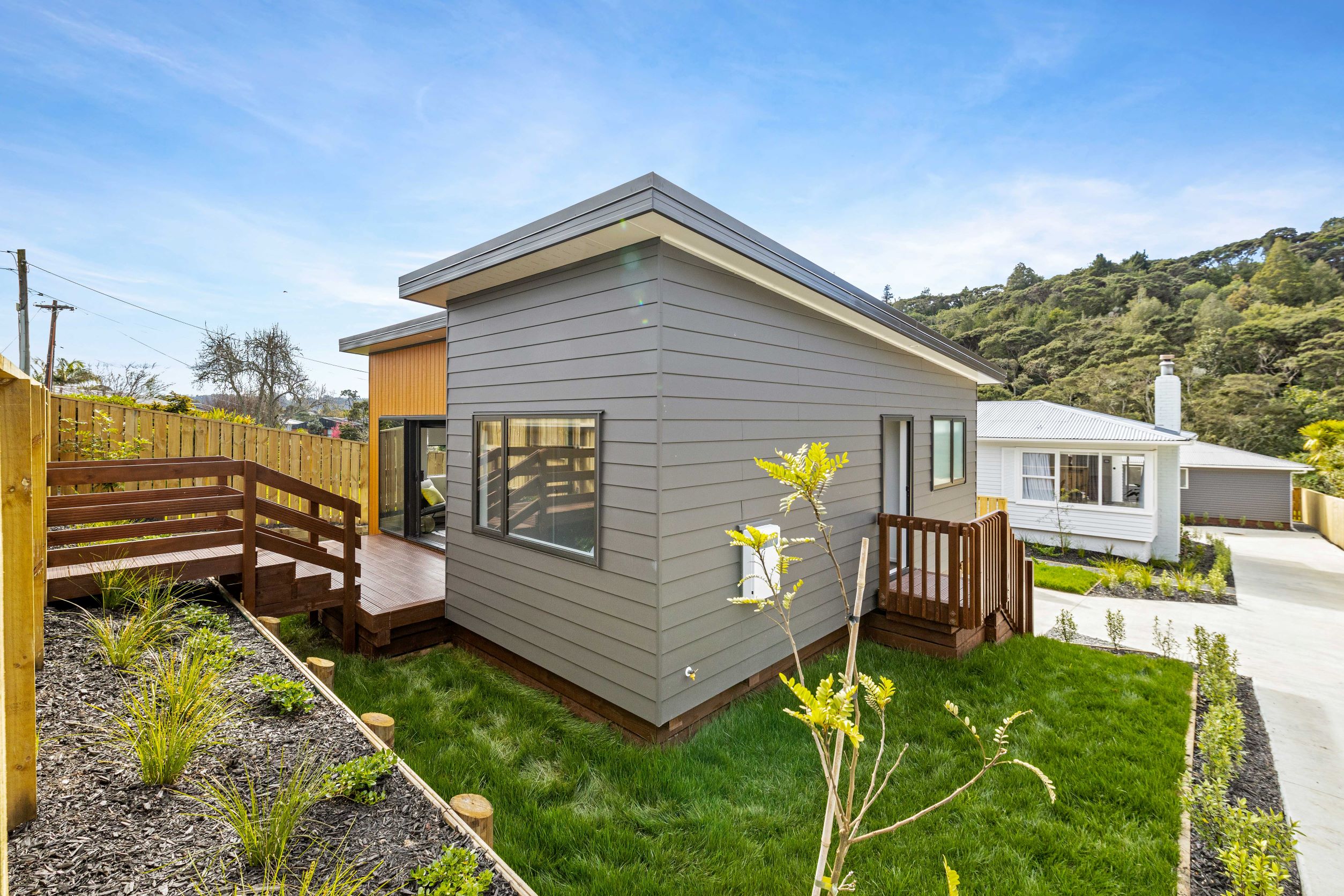 Eskdale Road is located in Birkdale on the North Shore, this project involved craning a house over the existing house, and sitting a new factory-built home on the front of the section. All three homes were bought up to the healthy homes standards ready for the new home buyers.